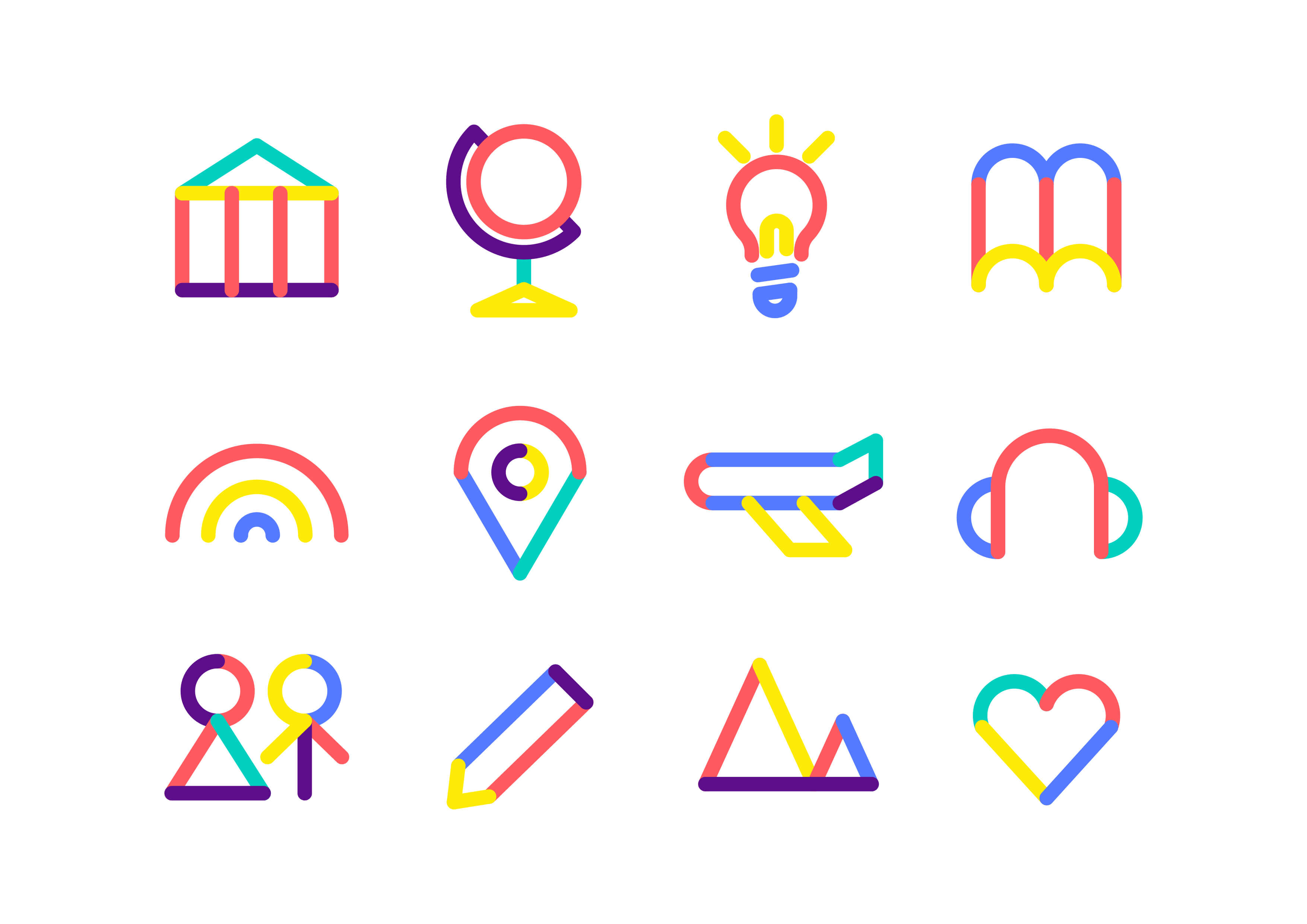 U-World is a chain of English language training institutions for students aged 3 to 14. The logo is a "W" composed of two "U"s, representing World. The whole logo is like the upper body of a child who raised his hands and cheered, symbolizing positive power and confidence. The five brand colors represent bravery (red), pure (blue), passion (yellow), unique (purple), and exploration (green).